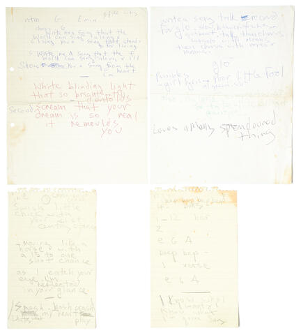 Bonhams Marc Bolan T Rex Four Sheets Of Marc Bolan S Handwritten Lyrics For Sing Me A Song And 21st Century Stance 1970s