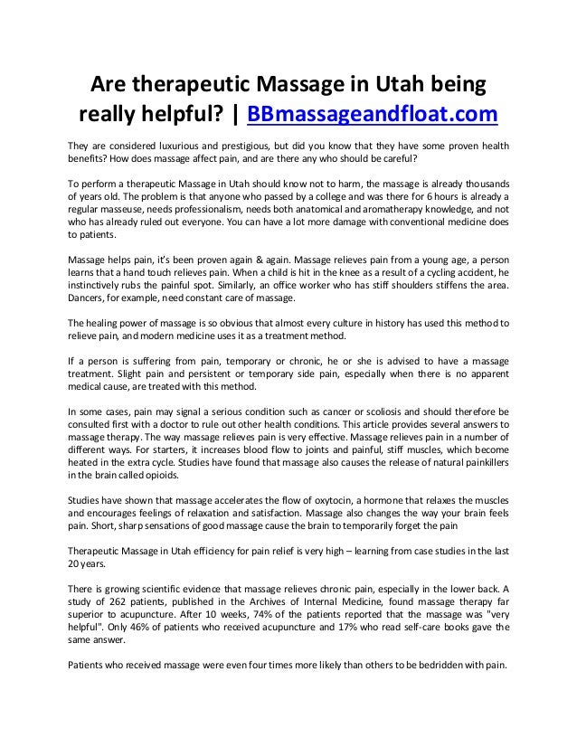 Are Therapeutic Massage In Utah Being Really Helpful massageandf