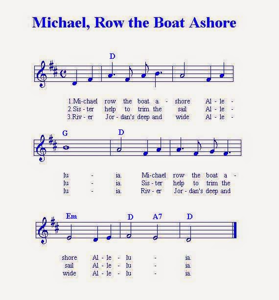It is a simple repeat of "Michael row the boat ashore, hallelujah" sung twice. It is believed that Michael helps ferry souls of the. Permission granted for instruction, public performance, or just for fun.