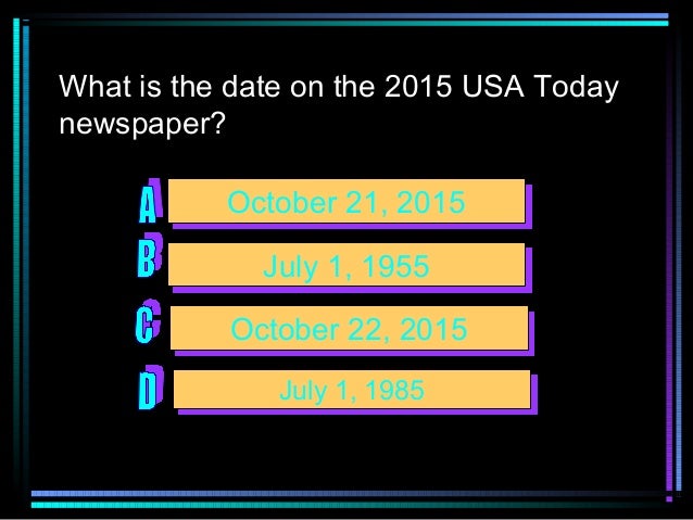 Date in back to the future 2. It's Back to the Future Day - the date Marty and Doc crashed the future in the second of the three time-hopping sci-fi adventure films. The Game, especially now that there's a new engine. Emmett "Doc" Brown.