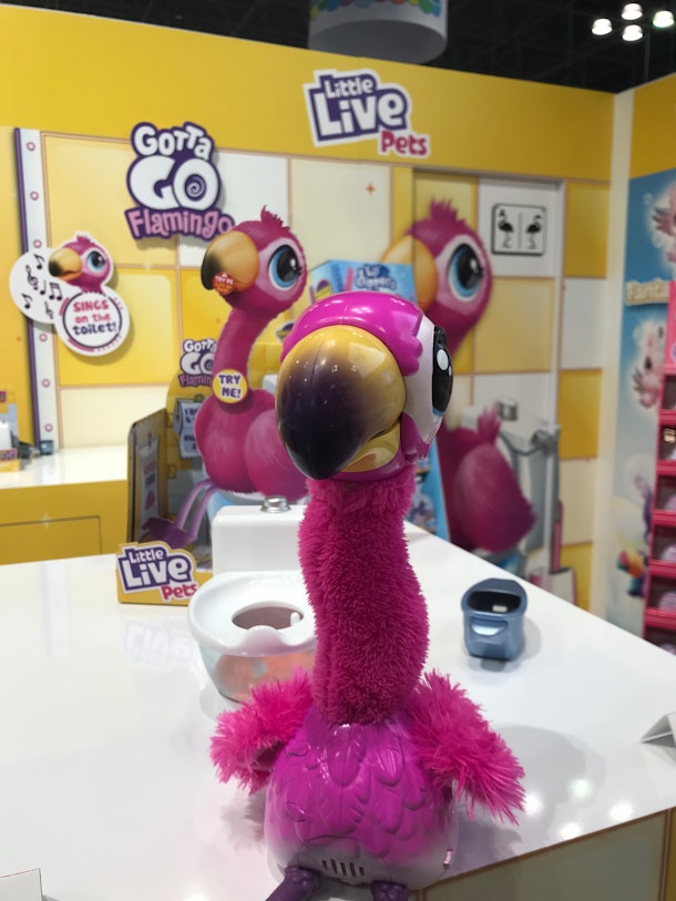 Little live gotta go flamingo Toys. Place him on the toilet and watch him poop into the bowl. The toy with toilet trouble, Gotta Go Flamingo.