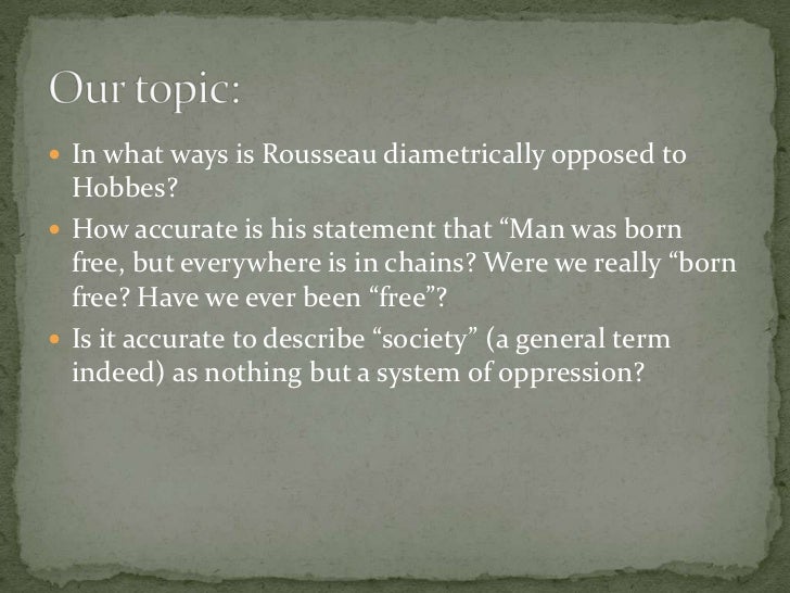 Since much of the world seems to be going to hell in a hand basket, why don't we pull up our socks & DO something about it?. “man is born free, but he is everywhere in chains,” Rousseau asserts that modern states repress the physical freedom that is our birthright, and do nothing to secure the civil freedom for the.
