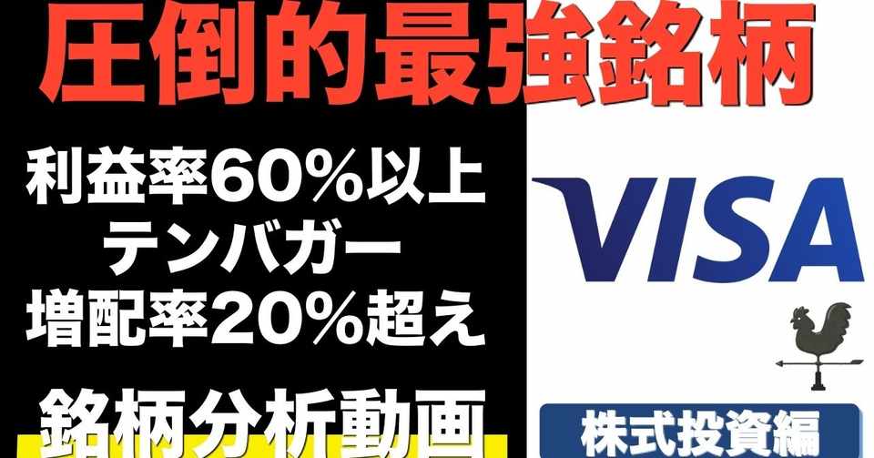 米国株 Visa ビザ銘柄分析 S P500を圧倒する成長と を超える増配率が魅力のオススメ銘柄 V 風見紘文 株式投資 Youtube Note