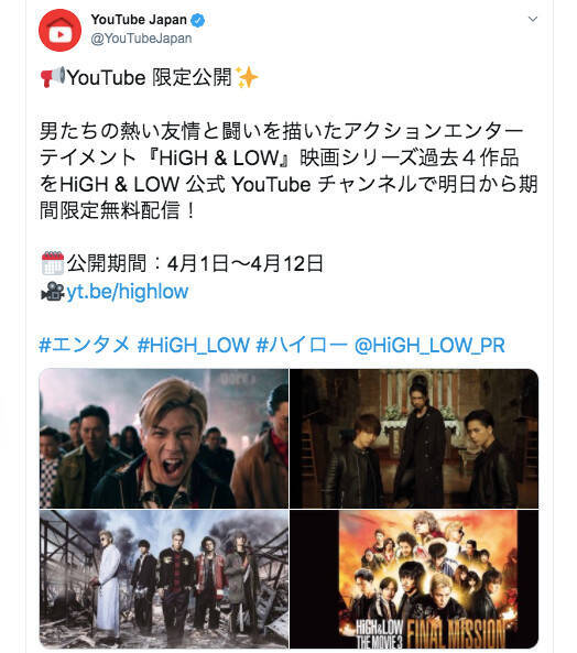 High Low シリーズ4作品が期間限定 無料 配信 公式youtubeチャンネルで限定公開 The Movie 年4月2日 エキサイトニュース