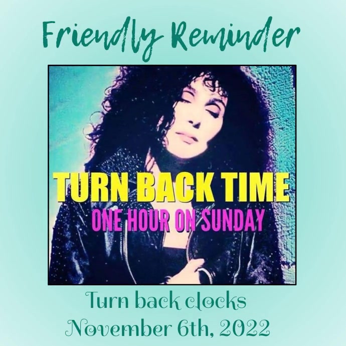 Turn Backtime One Hour On Sunday Don T Forget To Cherw Your Friends Unknown Punster Cher With Your Friends Unknown Punster Cher Meme On Me Me