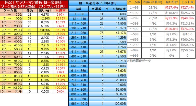 サラリーマン番長 朝一設定変更時 挙動 恩恵 実践値757件
